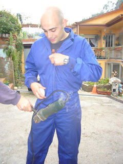 A todo isto e despois de varios intentos , sempre involuntariamente iso si, Fran conseguíu queimar literalmente unha rebarbadora. Tiña que pasar.