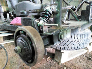 Estamos coa suspensión dianteira, é algo mais complexo do que parece e estivemos dándolle moitas voltas a como poderíamos facelo. Temos esta primeira versión que teremos que probar para saber como se comporta. Somos bastante optimistas ó respecto aínda que a teoría dí que non debería funcionar, a práctica creo que non nos vai a fallar.
